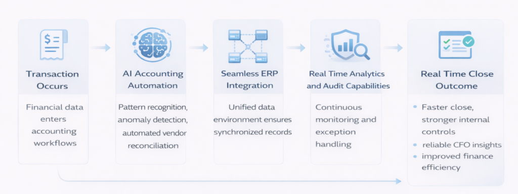 When powered by AI accounting automation, supported through seamless ERP integration for unified data, and enhanced with real-time analytics and audit capabilities, organizations move toward sustained accuracy, stronger internal controls, and greater operational resilience.